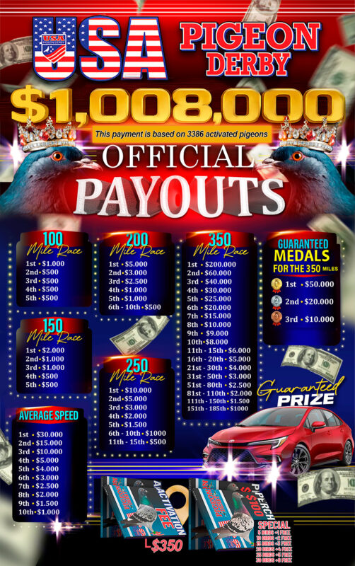 Participating in the USA Pigeon Derby has been an incredible experience. The organization and communication are top-notch, making the entire process smooth and enjoyable. My pigeons have performed exceptionally well, thanks to the guidance and support from the team. I highly recommend USA Pigeon Derby to anyone serious about pigeon racing.
